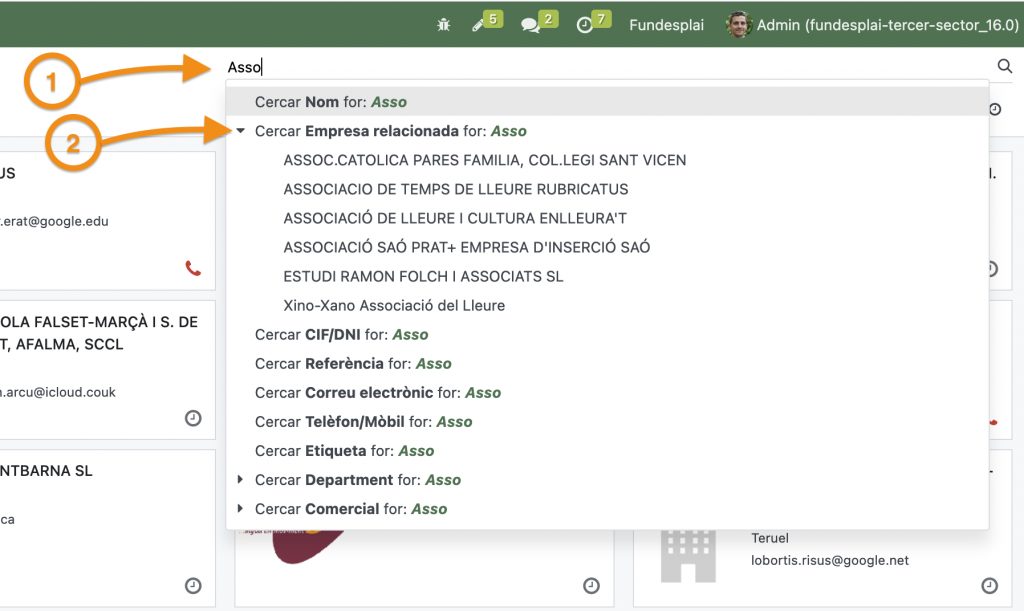 L’ús del camp de cerca és equivalent a l’ús de l’operador conté quan s’afegeix un filtre personalitzat. Si introdueixes un valor parcial i selecciones directament el camp desitjat, s’inclouran tots els registres que continguin els caràcters que has escrit per al camp seleccionat.