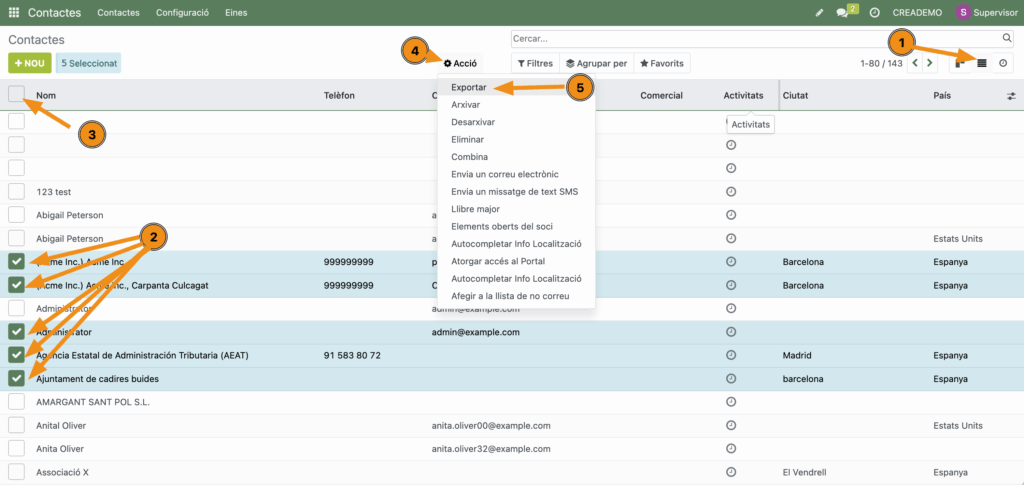 - Selecciona els registres a exportar. Per a seleccionar un registre, selecciona la casella situada a l’esquerra del registre corresponent.
