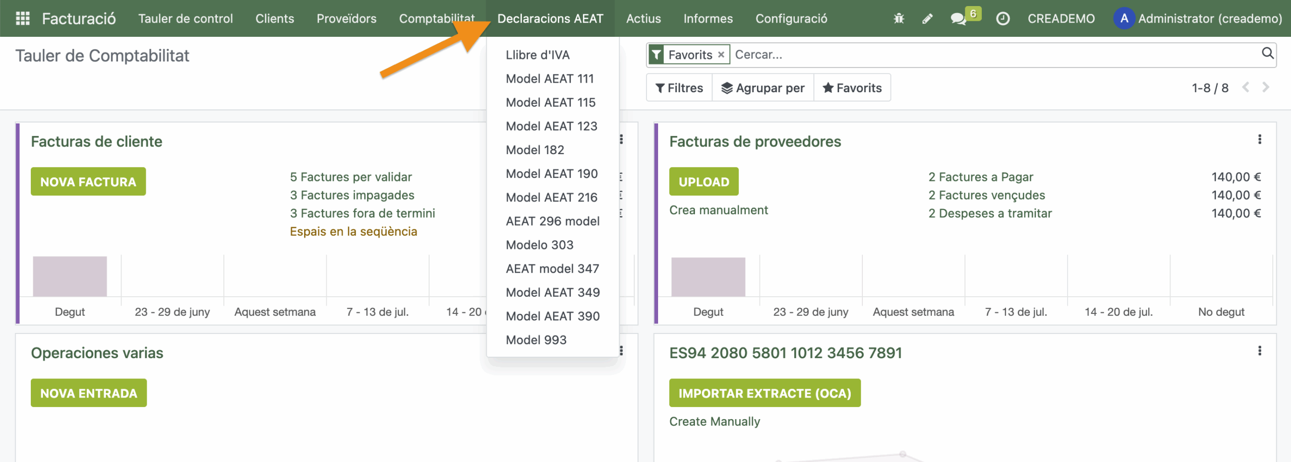 Ves al menú Facturació -> Declaracions AEAT i tria el Model