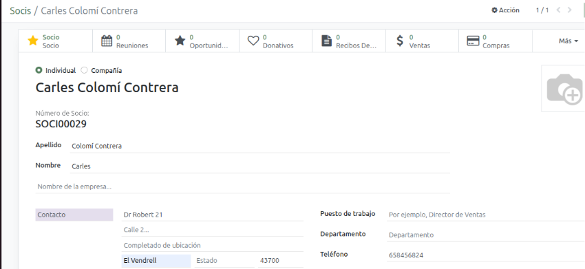 Es generarà el contracte i es mostrarà novament la pantalla de contacte però, ara, amb el número de soci.