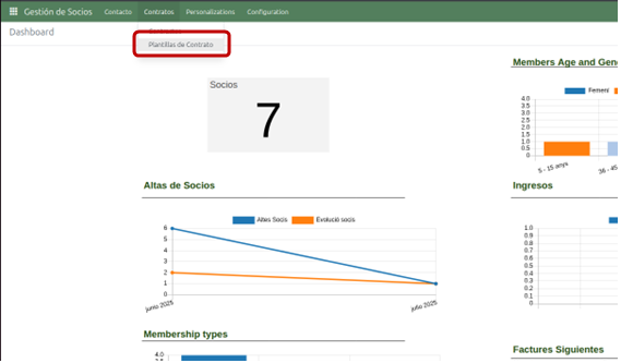 Els contractes especifiquen la relació dels socis amb l’entitat i poden ser generats mitjançant plantilles de contractes pre-definides.