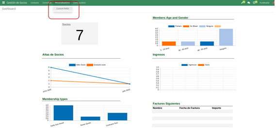 Una característica del mòdul de Gestió de Socis és la possibilitat de definir els camps que es vulguin dins la fitxa de contactes. D’aquesta manera es pot adjuntar informació al formulari de socis que no sigui estàndard.