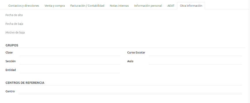 La pantalla que apareix és el formulari estàndard de contactes d’Odoo, on s’hi han afegit camps per tal de tenir més informació.