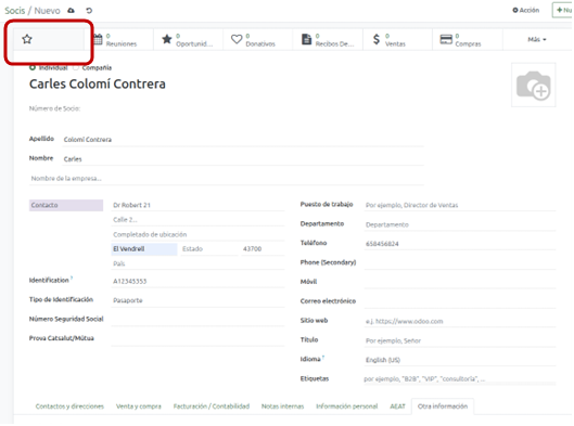 Una vegada creat el contacte, per tal de fer-lo “Soci”, només cal pitjar el primer botó amb l’estrella, a la part superior esquerra.