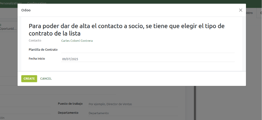 Al formulari cal definir uns quants camps. El mòdul de Gestió de Socis fa ús del mòdul Contract de la OCA.