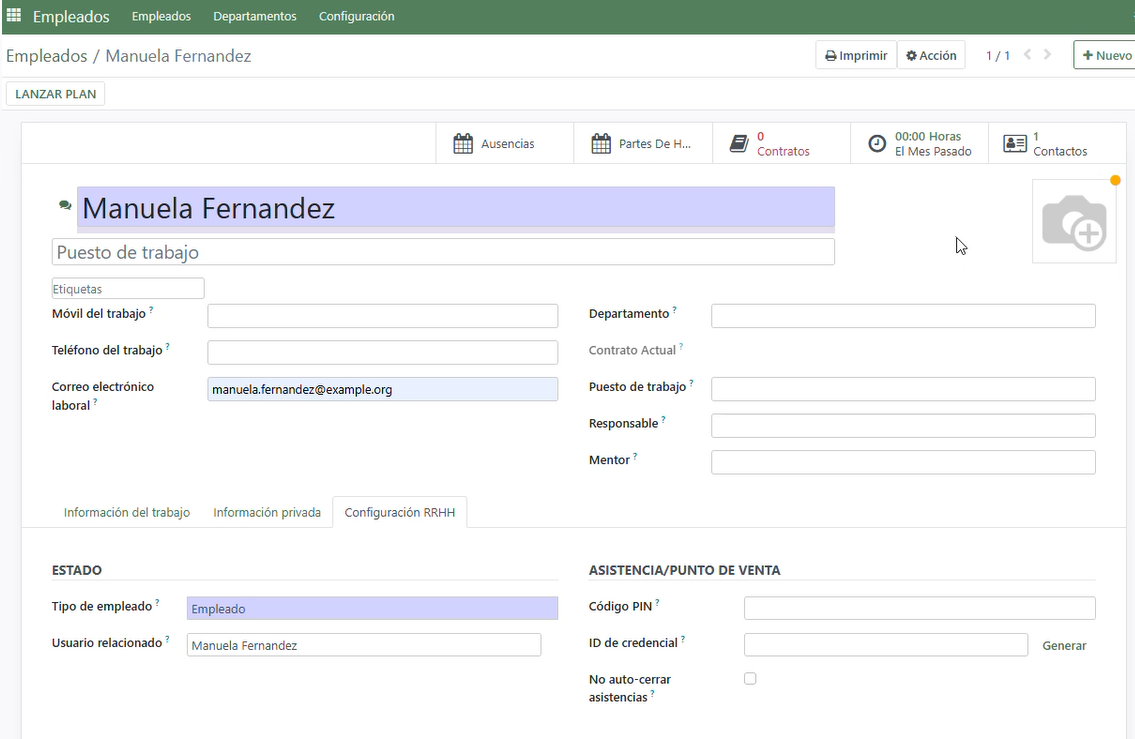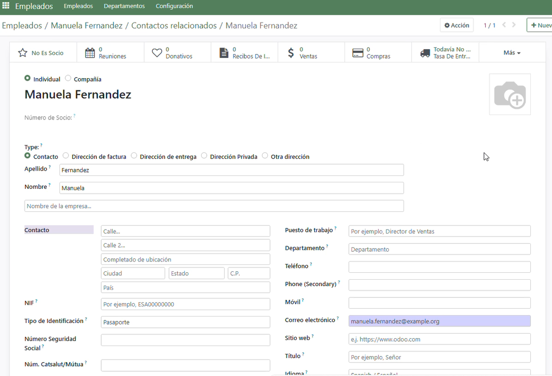 6. Automàticament es crea un contacte relacionat amb l’empleat.