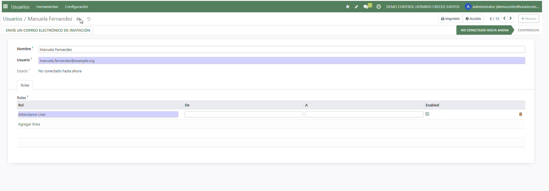 3. Assignar rol/permís per a registre horari.