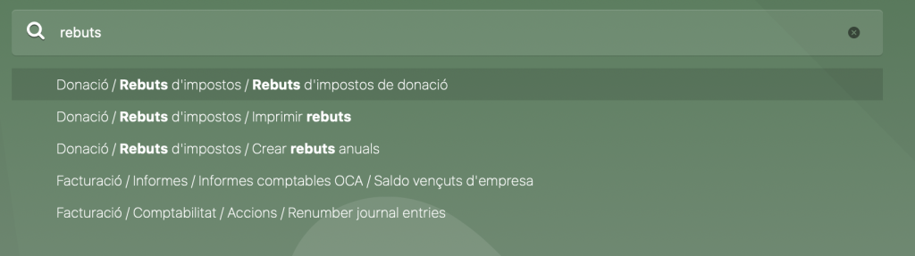 Aquest menú disposa d’un cercador de menús molt útil per a trobar ràpidament, no només aplicacions, sinó també menús dins de les aplicacions.