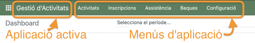 Botó Barra aplicacions A la zona de menús sempre trobarem sempre el botó d’accés al menú d’aplicacions que ens permet tornar al menú inicial d’aplicacions.
