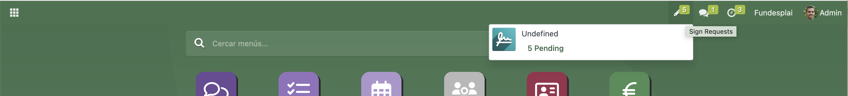 Notificacions de firma. Si tens accés a l’aplicació Cotes, quan tinguis signatures pendents, apareixerà un número i, en clicar, un accés a l’aplicació per a signar-les. (Veure aplicació Cotes)